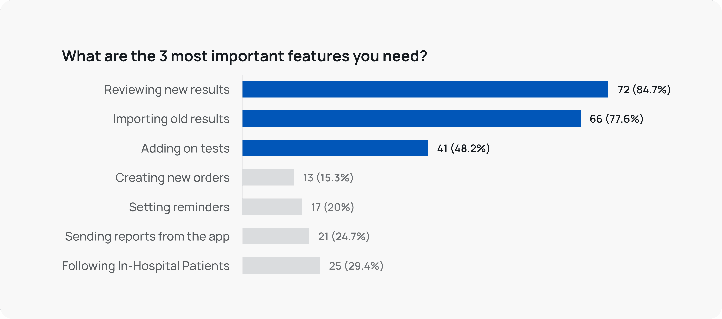Feature prioritisation - our survey responses clearly pointed to 3 features being the most important.