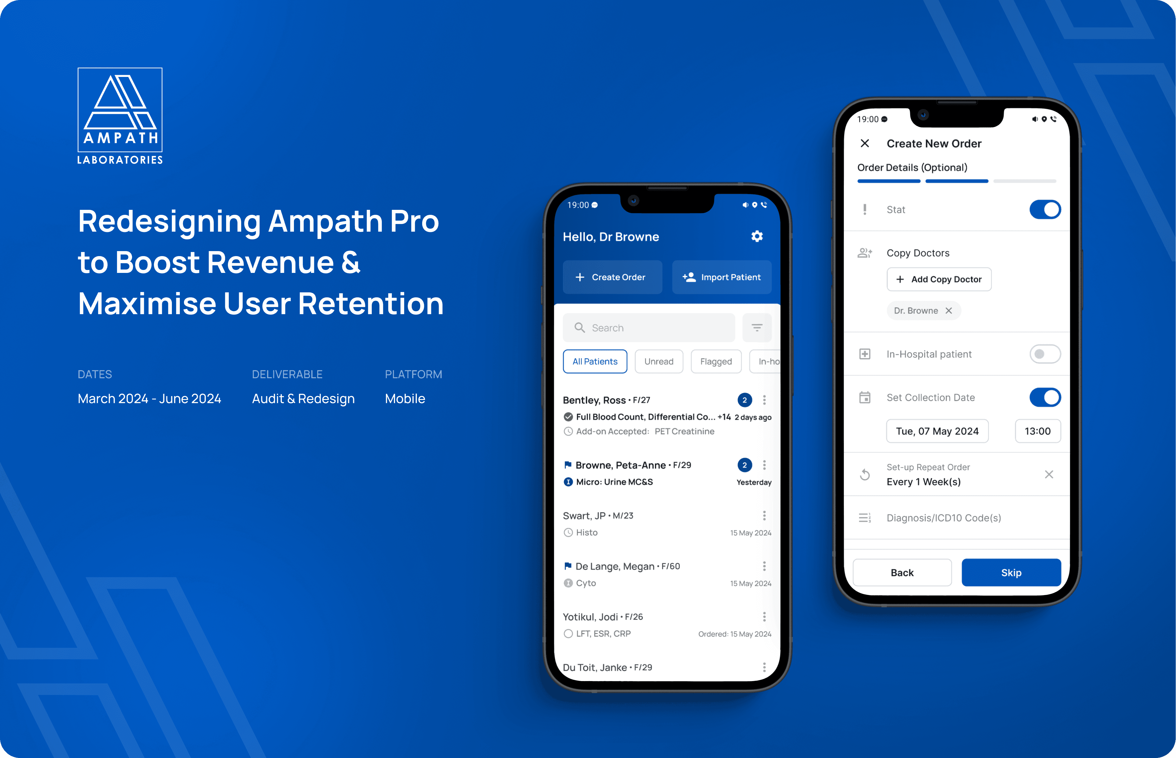 Redesigning Ampath's app to elevate the everyday lives of South African doctors while increasing revenue & maximising user retention.