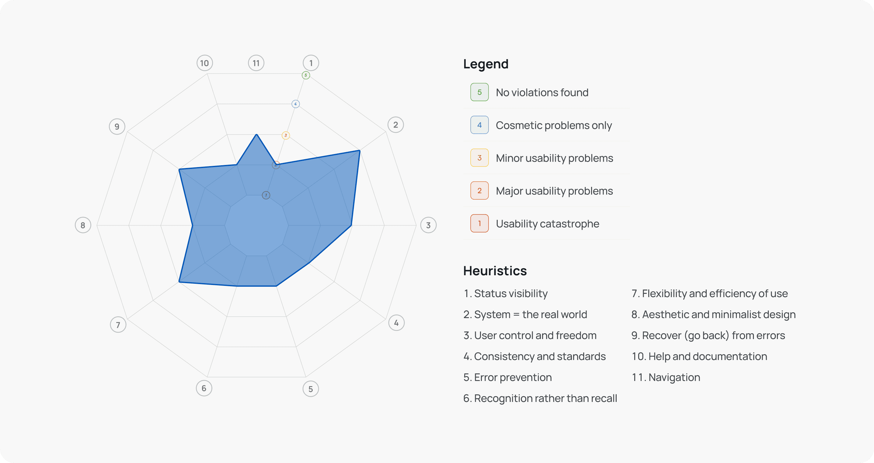 Our heuristic analysis scores in a matrix. We added a "Navigation" heuristic to help illustrate the issues to the client.