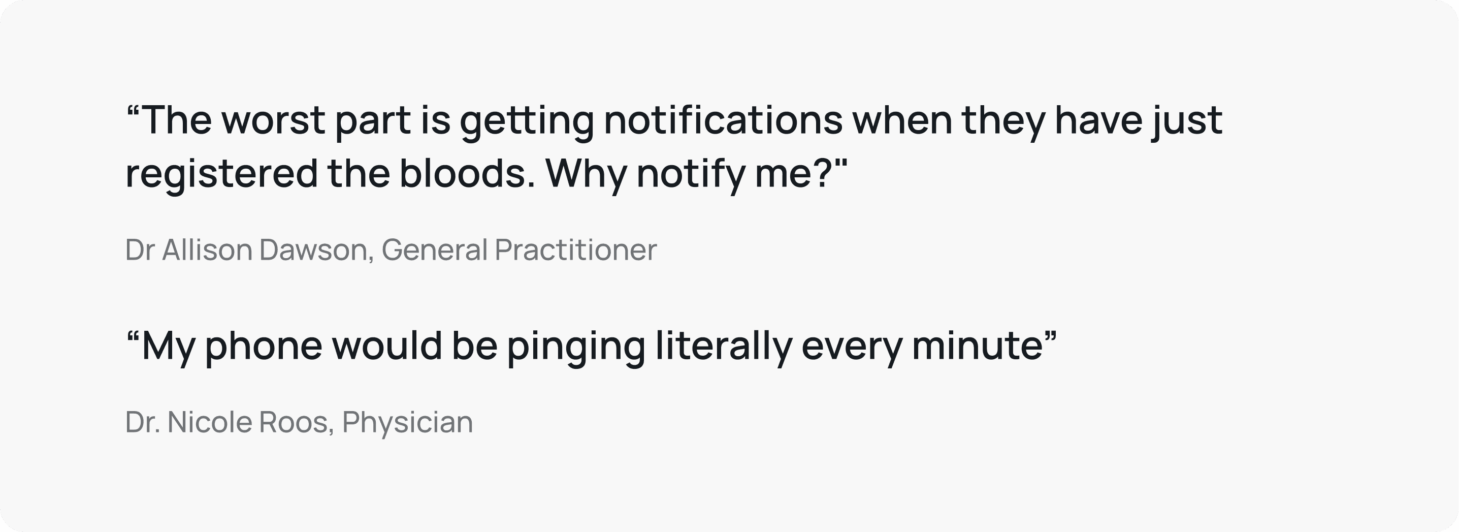 Interview quotes highlighting the frustrations doctors had with the overwhelming notifications.