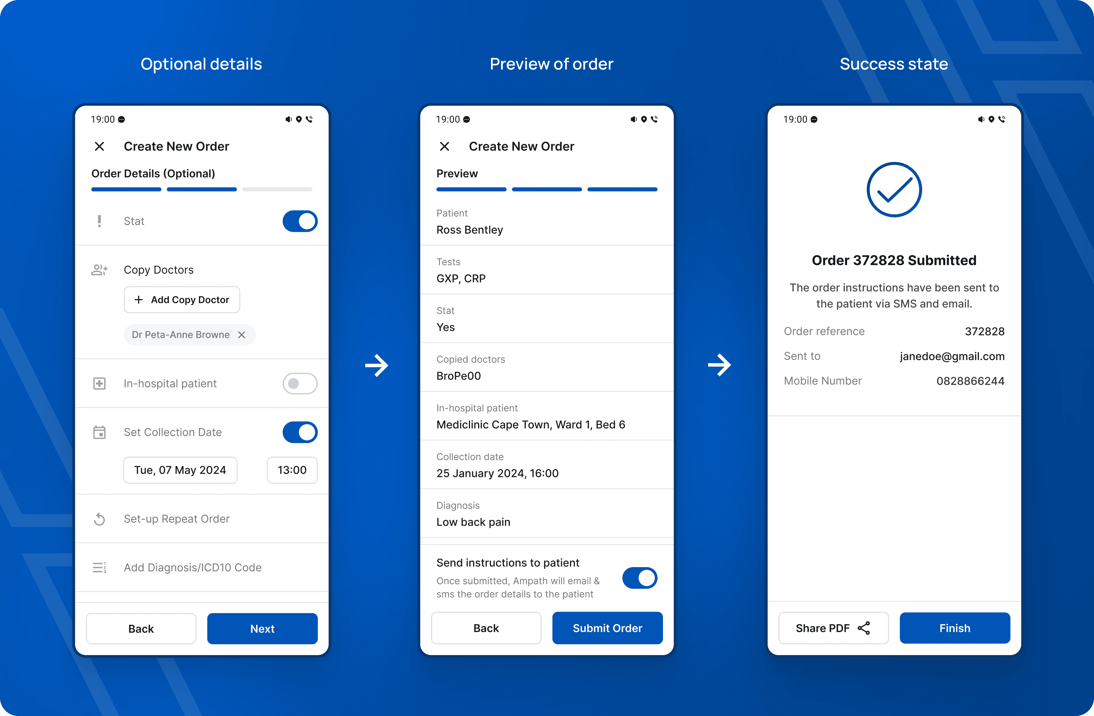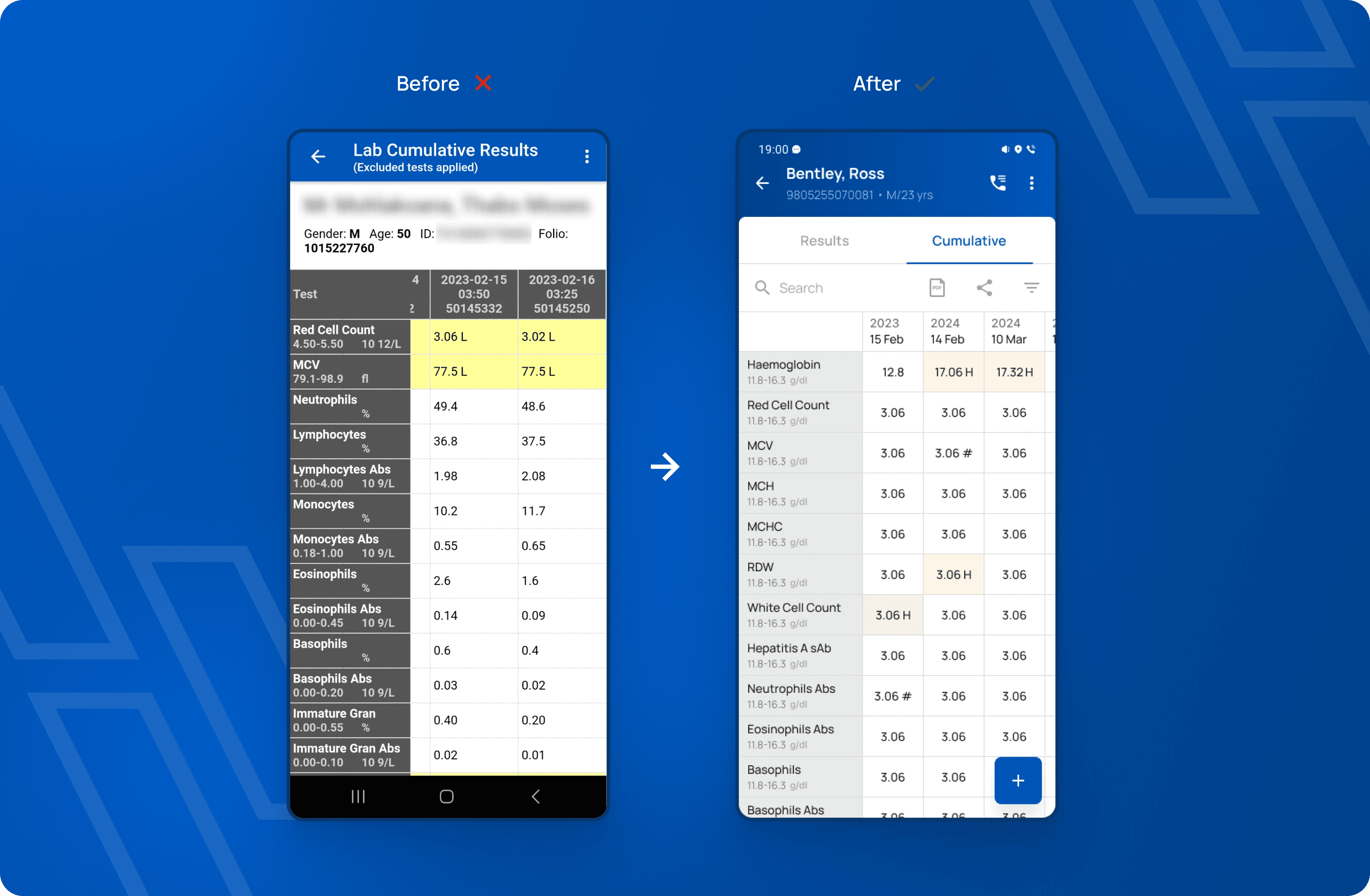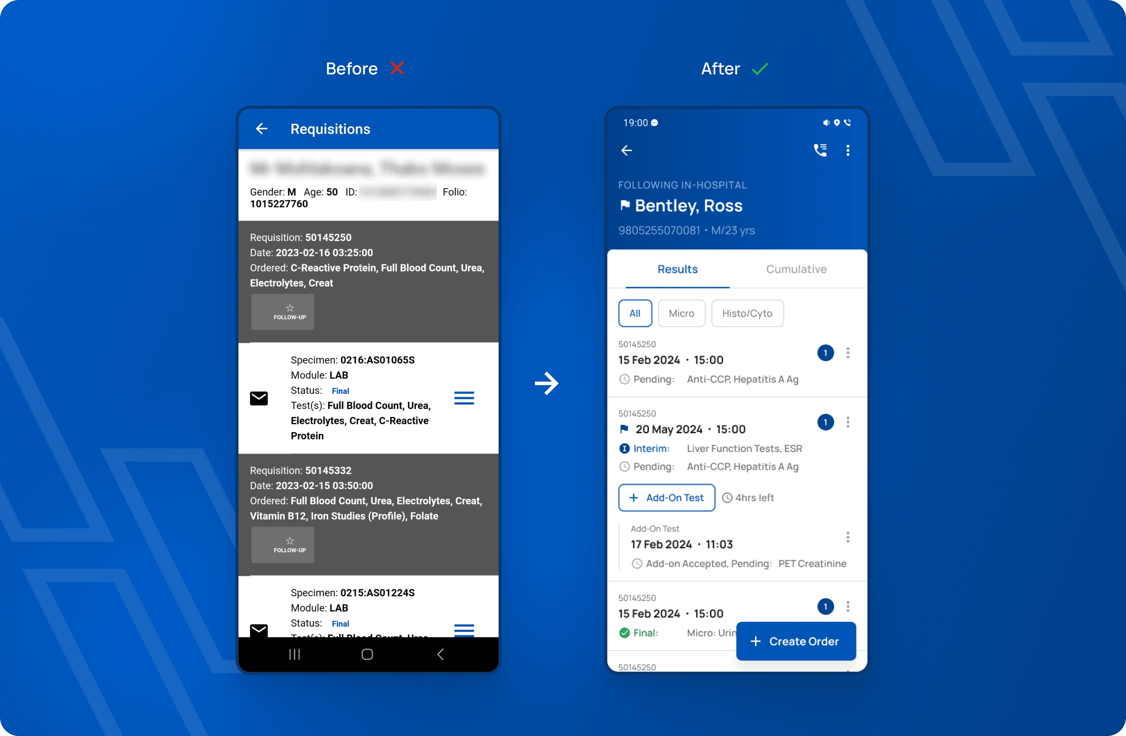 The redesigned Ampath Pro app improved usability, reduced friction in critical clinical workflows, and established a scalable foundation for a nationally used healthcare platform.