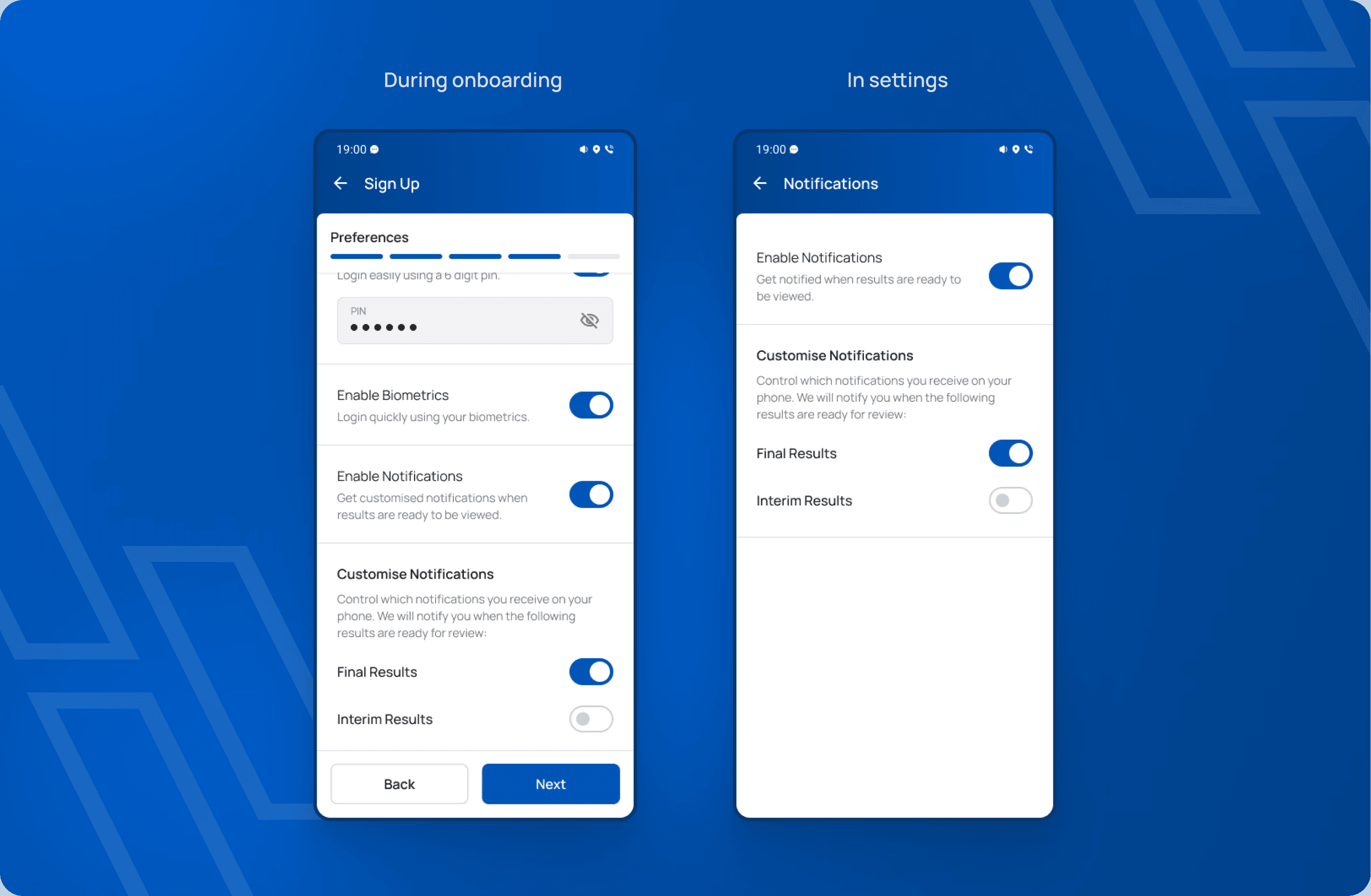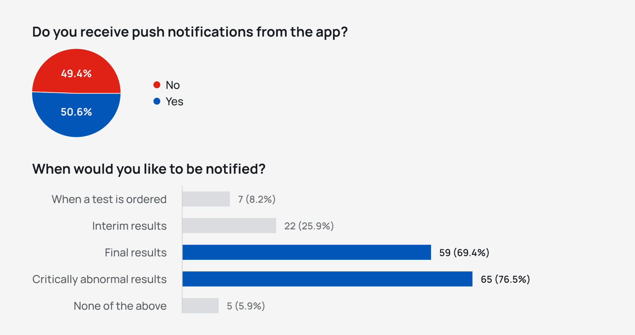 allowing doctors to choose exactly which result types they wanted to be notified about. Notifications were redesigned around urgency, ensuring critical updates stood out while non-urgent information remained accessible without interruption.