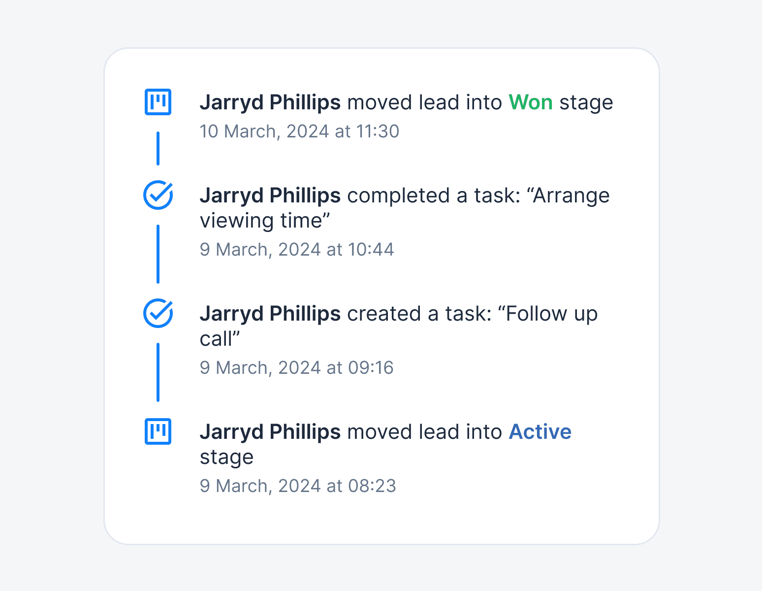 Leads are structured for action: quick scanning, clear status, and a detail view that prioritises next steps and history.
