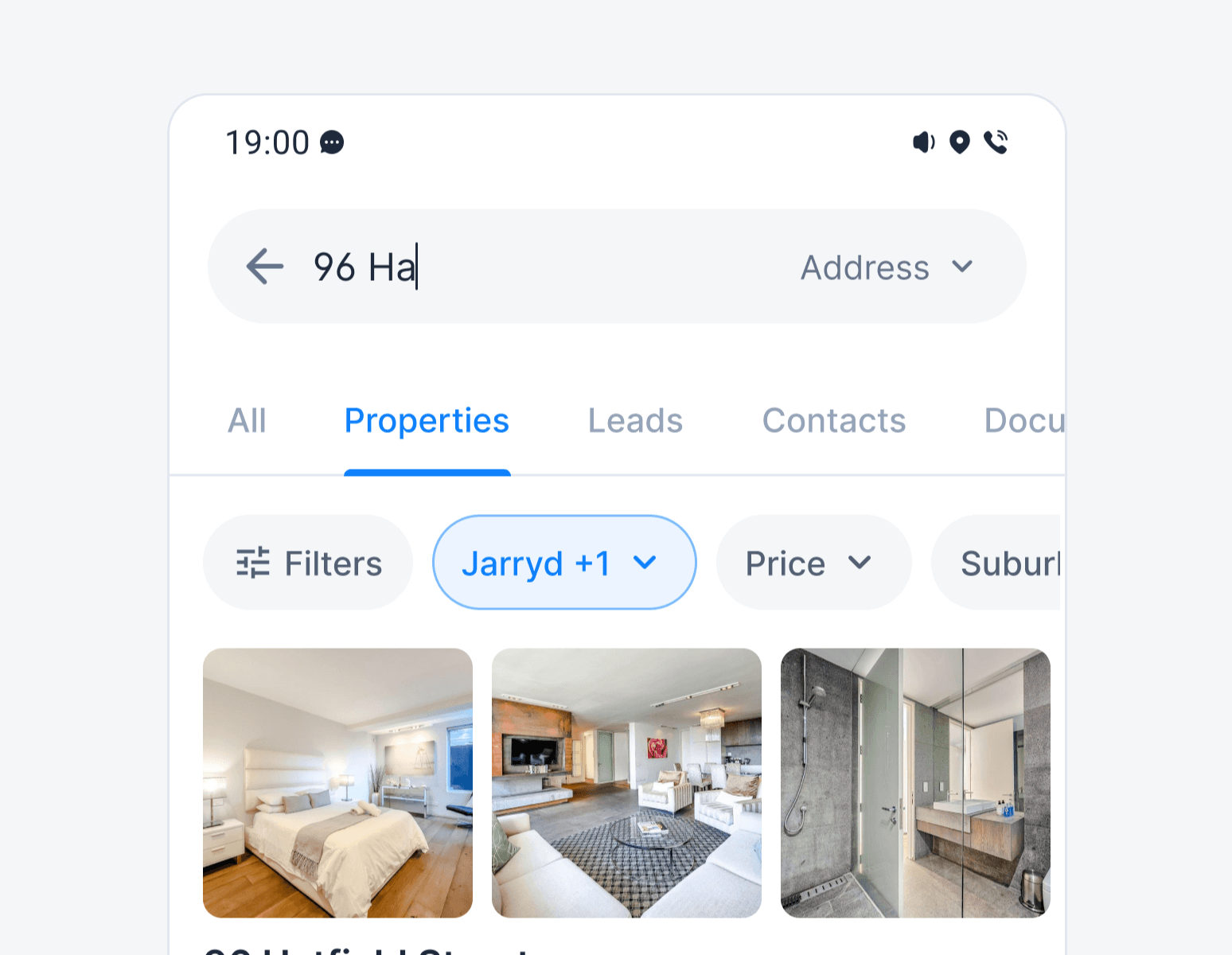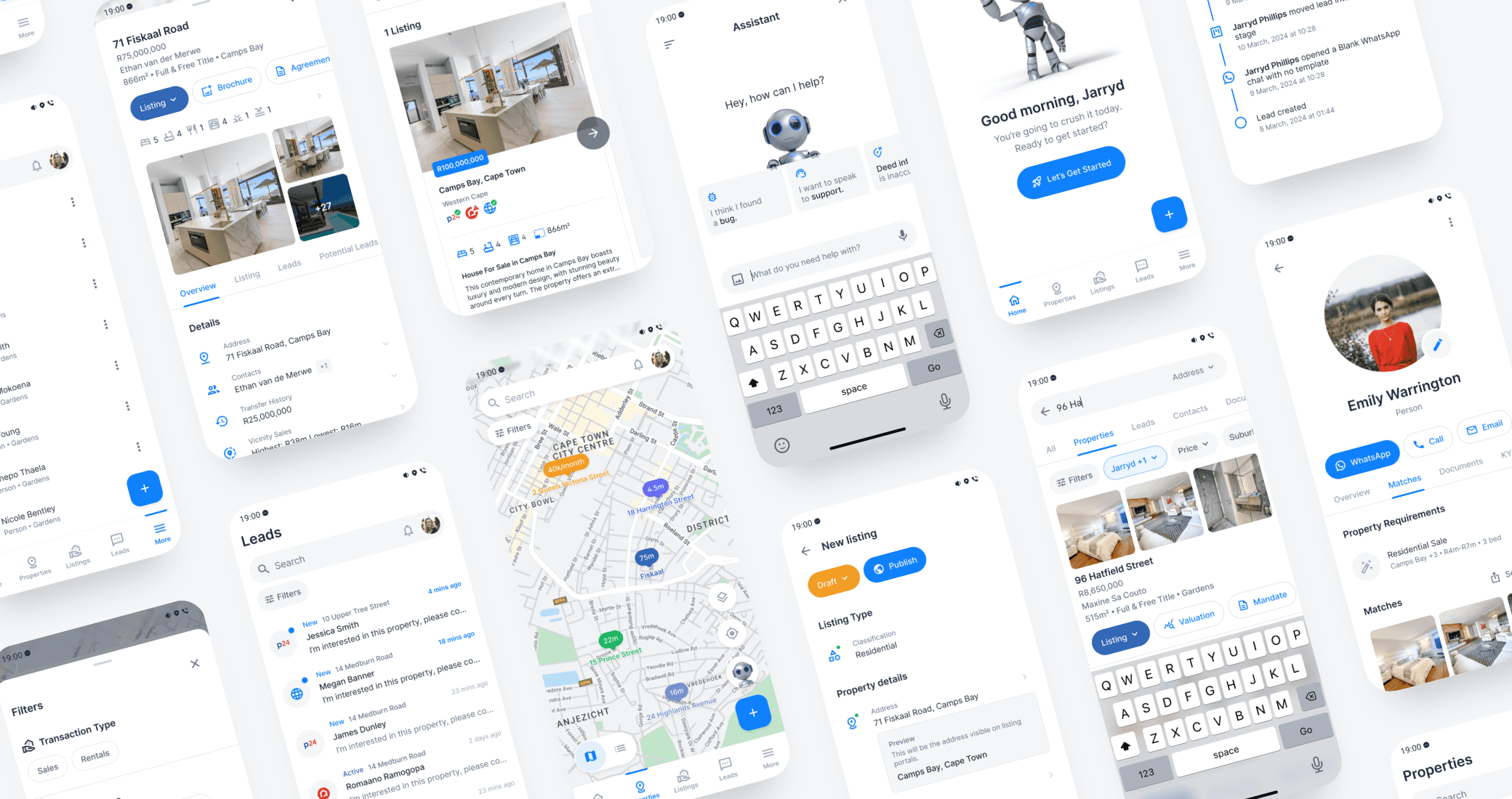 Search and filtering were treated as first-class UX concerns - letting users jump to properties, leads, listings, documents, or campaigns in seconds.
